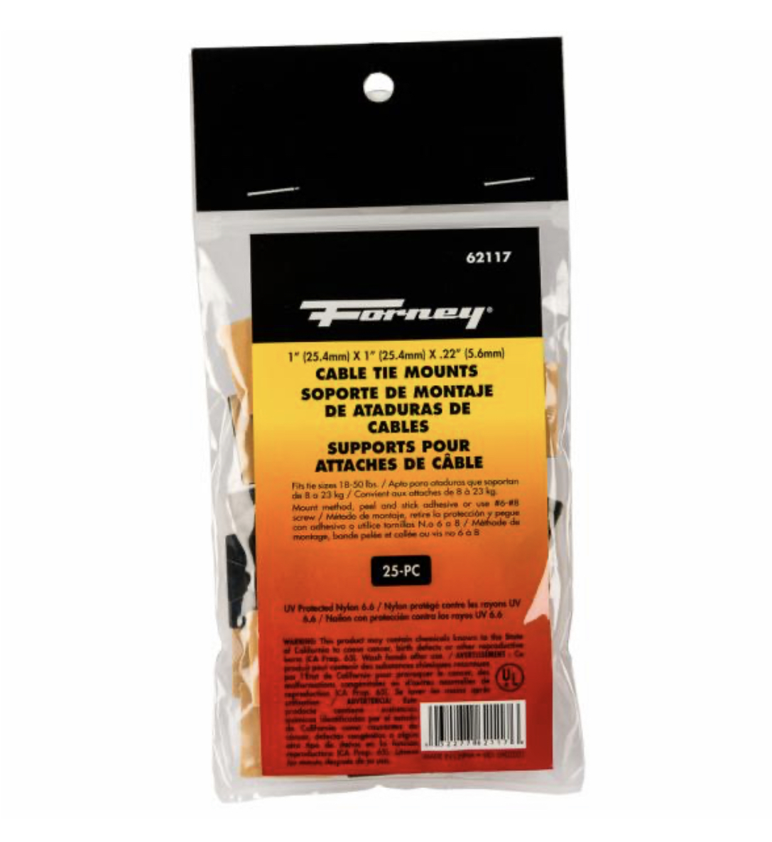 Black 18-50 lbs. Adhesive or Screw Mounts, 25-Pack