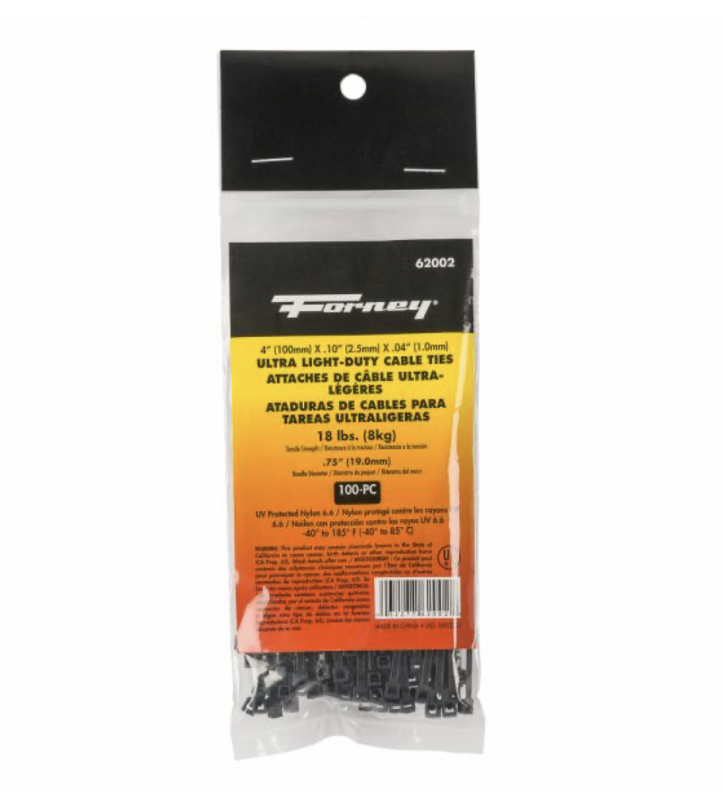 Cable Ties, 4″ Black Ultra Light-Duty, 100-Pack
