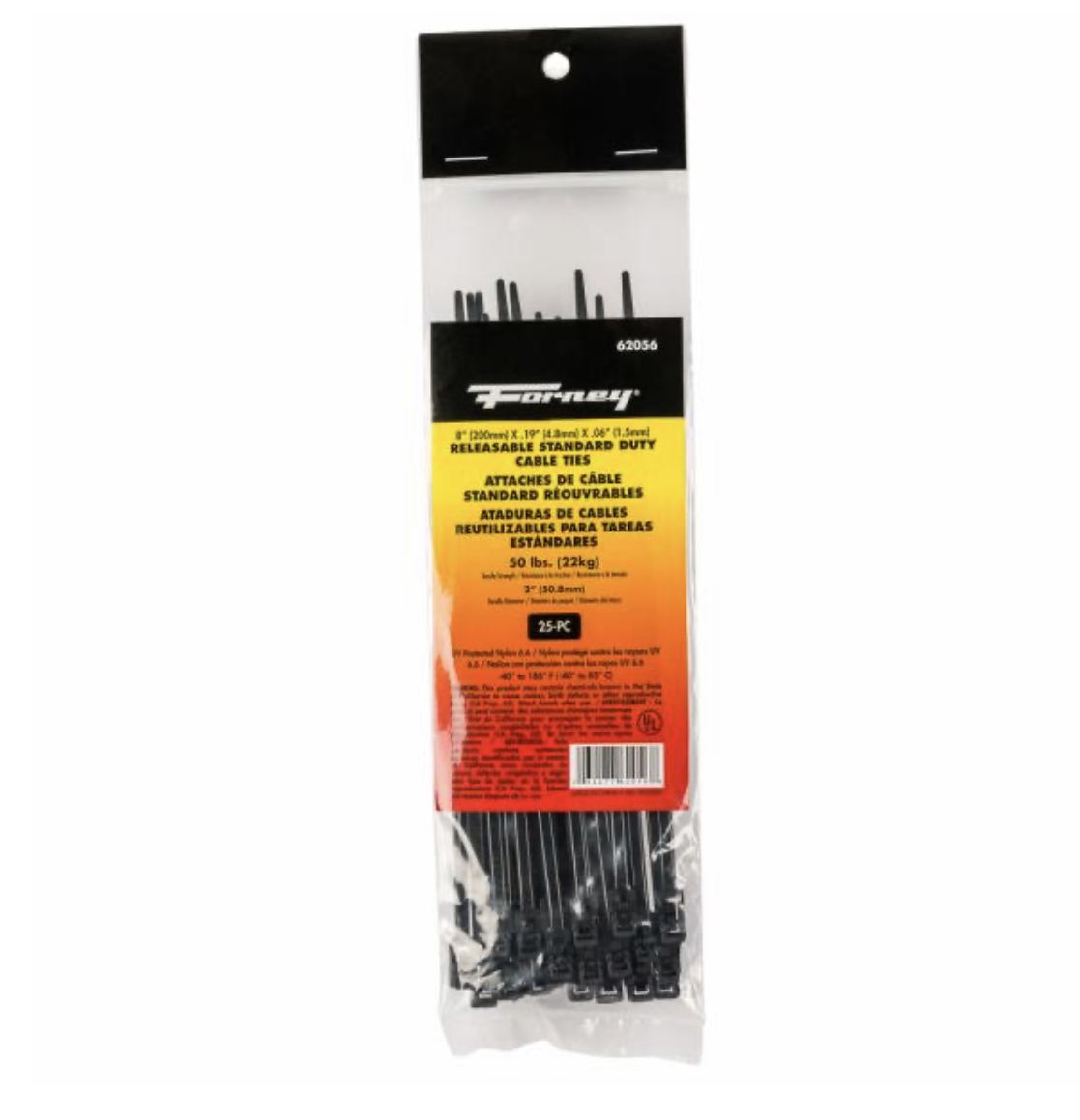 Cable Ties, 8" Black Releasable Standard Duty, 25-Pack quantity
