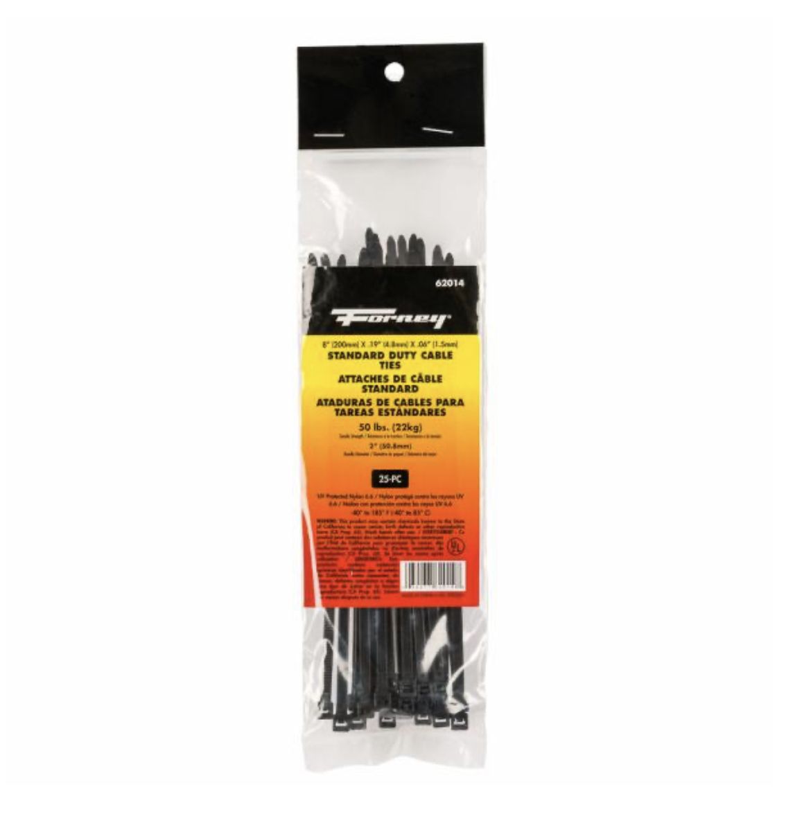 Cable Ties, 8″ Black Standard Duty, 25-Pack