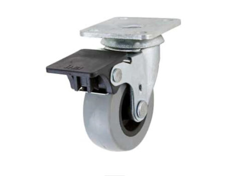 Swivel Caster with Brake, 300 lb Weight, Wheel Diameter: 4 in, Wheel Material: TPU, Brake Type: Total Lock, Bearing Type: Ball, Plate Dimensions: 2-5/8 x 3-3/4 in, Housing Material: Polypropylene, Powder-Coated, Black/Blue, Plate Mounting, Dimensions: 7 in L x 2-5/8 in W x 5 in H