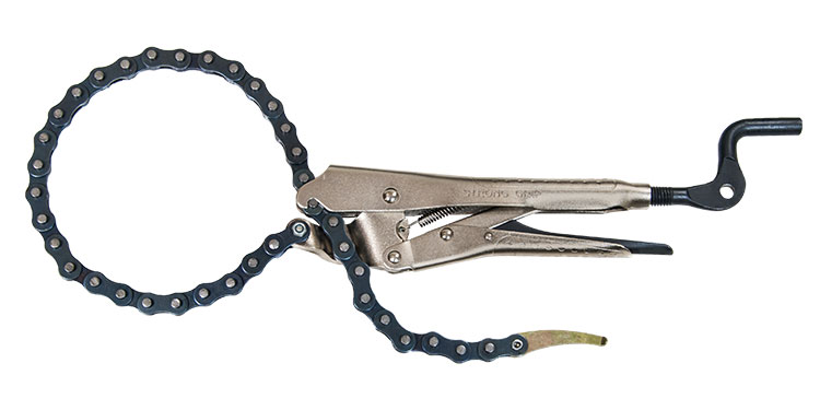 Clamp around odd or awkwardly shaped items. Hold two workpieces, or a group of materials securely in place while you weld. Replaceable chain is available in 24″. 36″, and 48″ lengths.