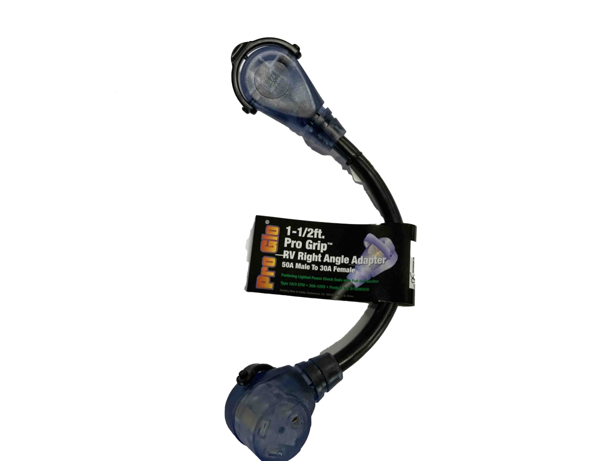 Pro Grip® 10/3 STW Lighted RV Right Angle Adapter 50A Male to 30A Female with CGM