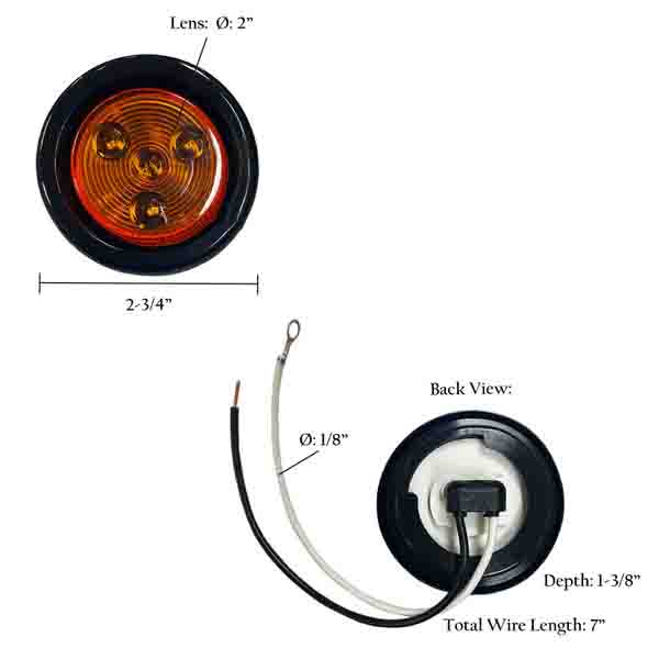 Trailer Light – 2″ Round Marker Light – Dark Amber Lens/ 3 Amber LEDS – Grommet & Plug