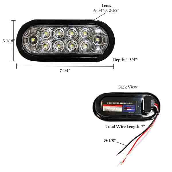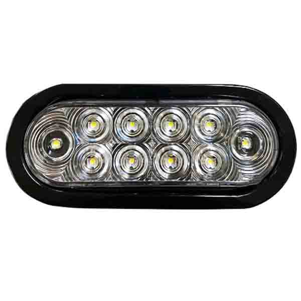 Trailer Light – 6″ Oval Backup Light – Clear Lens/10 LEDS White – Grommet & Plug