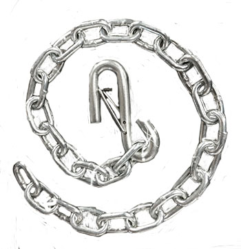 Safety Chain is defined as an assembly which provides a secondary means of connection between the rear of the towing vehicle and the front of the trailer (or towed vehicle); it includes link chain and all attaching means, or an alternative system. The purpose of Safety Chain is to retain connection between the towing vehicle and trailer in the event of separation of the trailer coupling from the ball or the ball from the hitch, long enough to bring the vehicles to a stop. It should not be construed that Safety Chain can ensure that vehicle control or connection will be maintained in the event of vehicle incidents such as loss of control, rollover, jackknife, collision, etc.