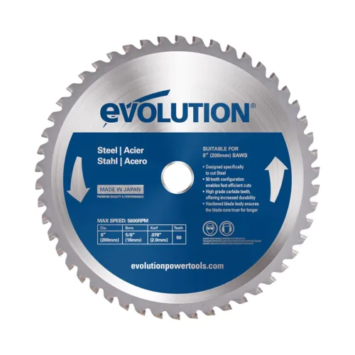 Evolution 8 In. 50T, 5/8 In. Bore, Tungsten Carbide Tipped Mild Steel Cutting Blade